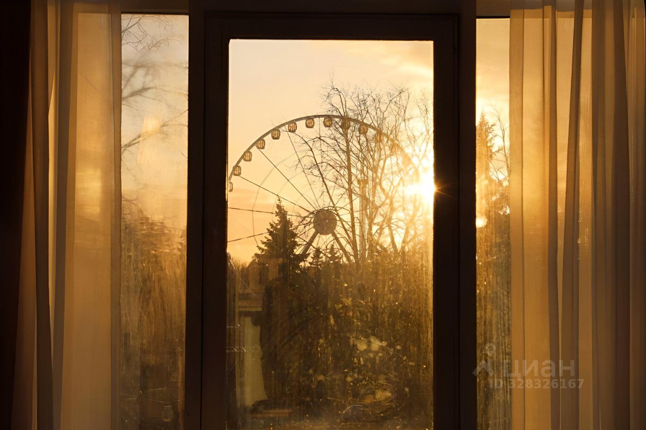 * прямой вид на парк из всех трёх окон