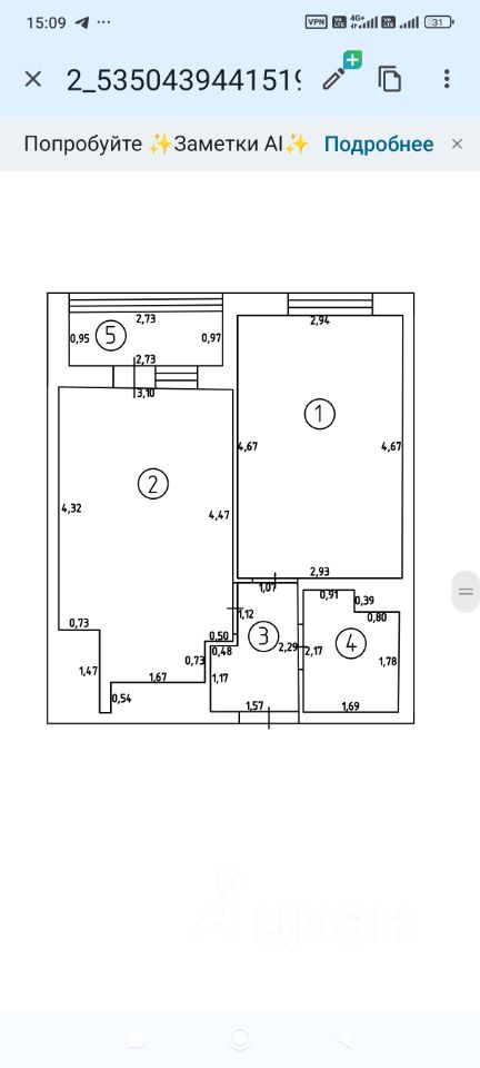 Квартира расположена на комфортном 5 этаже. Высота потолков — 2,7 метра. Совмещенный санузел 3,4 м2, лоджия (торцевая сторона, вид с лоджии представлен на фото). Кухня - 15,3 м2.