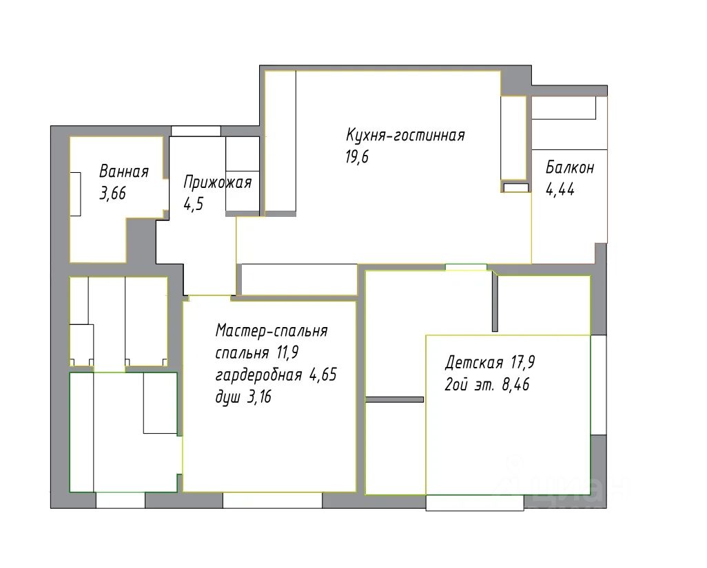 Высокие потолки 3,6 м, мастер-спальня и функциональная детская, не оставят вас равнодушными!