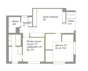 2 спальни и кухня-гостиная (формат 3Е), общая площадь 65,3 м².