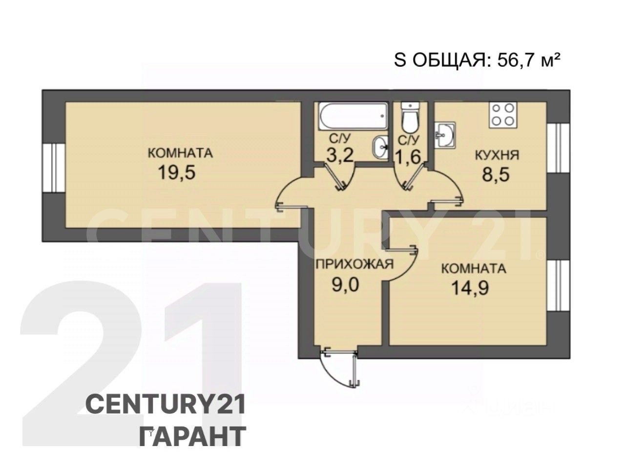 Общая площадь56,7 м²