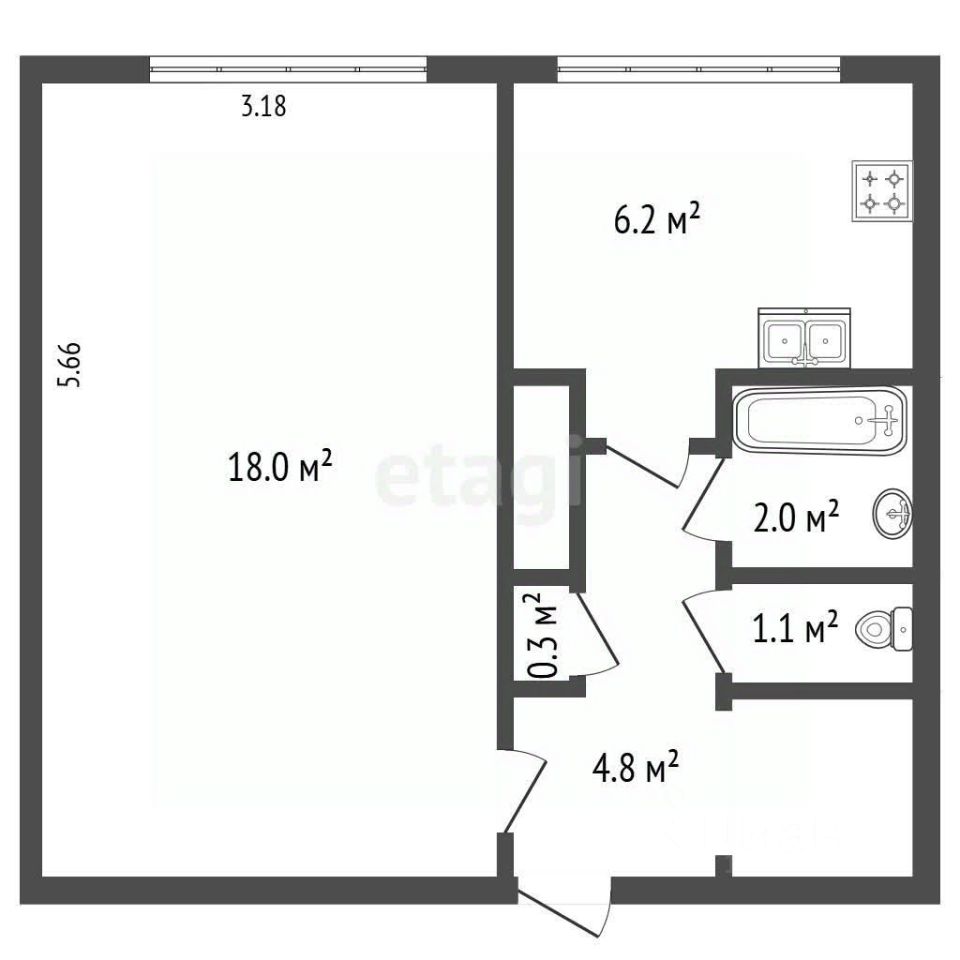 При продаже остается кухонный гарнитур и газовая плита. В комнате шкаф- купе.