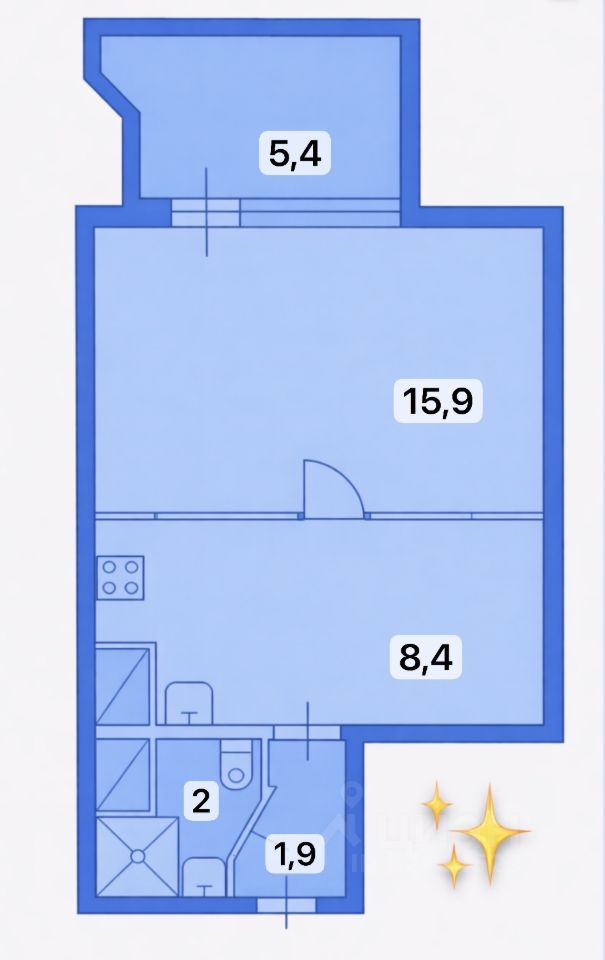 •Отдельная комната 15,9м2