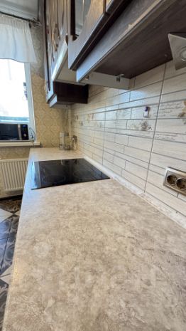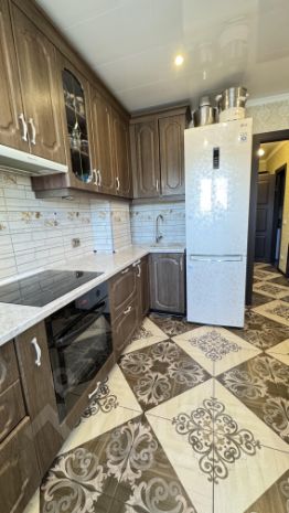 В квартире остается мебель и техника : кухонный гарнитур с варочной поверхностью и вытяжкой .