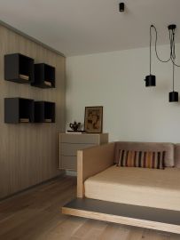 - индивидуальное проектирование пространства: корпусная мебель создана специально для этой квартиры;