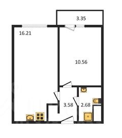 Продается уютная однокомнатная квартира с евроремонтом в современном доме 2022 года постройки. Общая площадь квартиры составляет 33.1 кв. м, из которых 10.56 кв. м — жилая площадь, а просторная кухня занимает 16.21 кв. м. Квартира расположена на 10 этаже 13-этажного панельного дома. Высота потолков 2.6 метра создает ощущение простора и света. Окна выходят во двор, поэтому в квартире всегда тихо и спокойно.