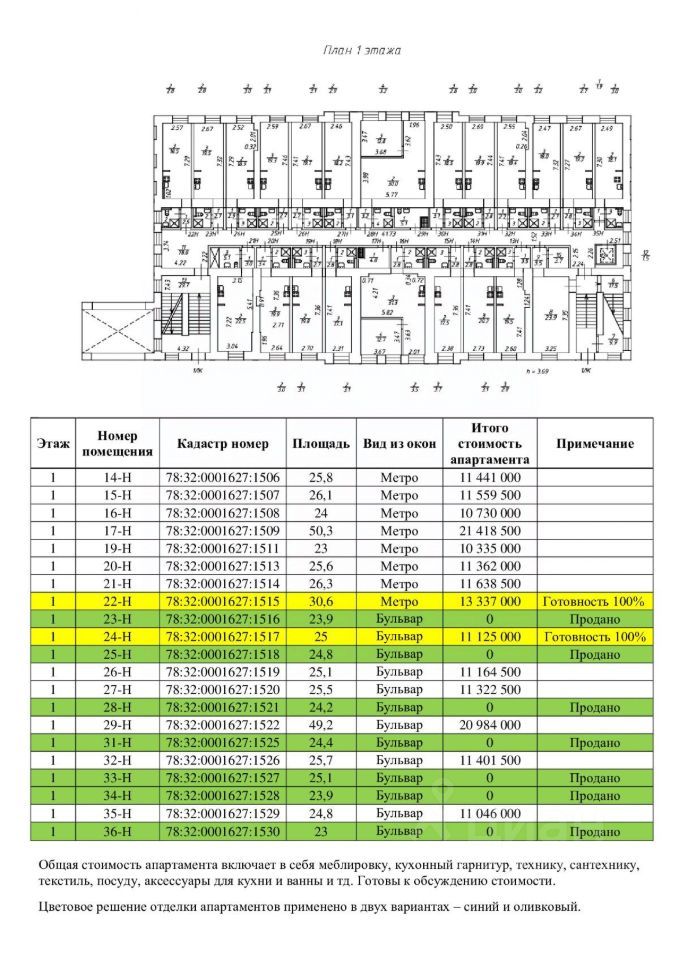 Все апартаменты продаются общим комплектом с 3 договорами, как готовый продукт для получения дохода (помещение апарта, меблировка и управление). Готовы к обсуждению стоимости.