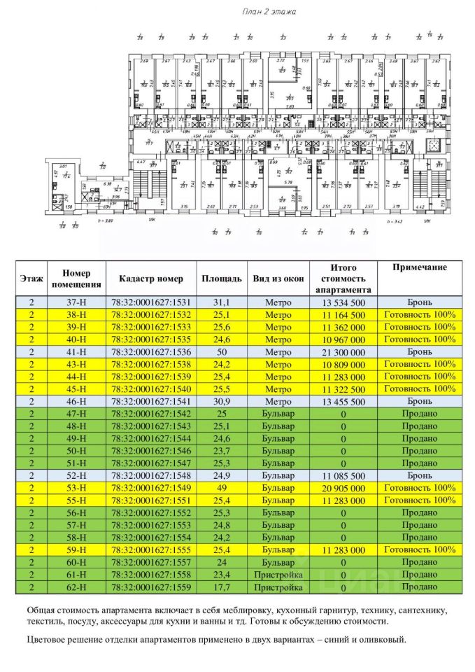 - с 1-3 сервисные апартаменты, полностью меблированные и оснащенные всем необходимым для сдачи в аренду (студии 23-30 м2 и евродвушки 45-50м2);