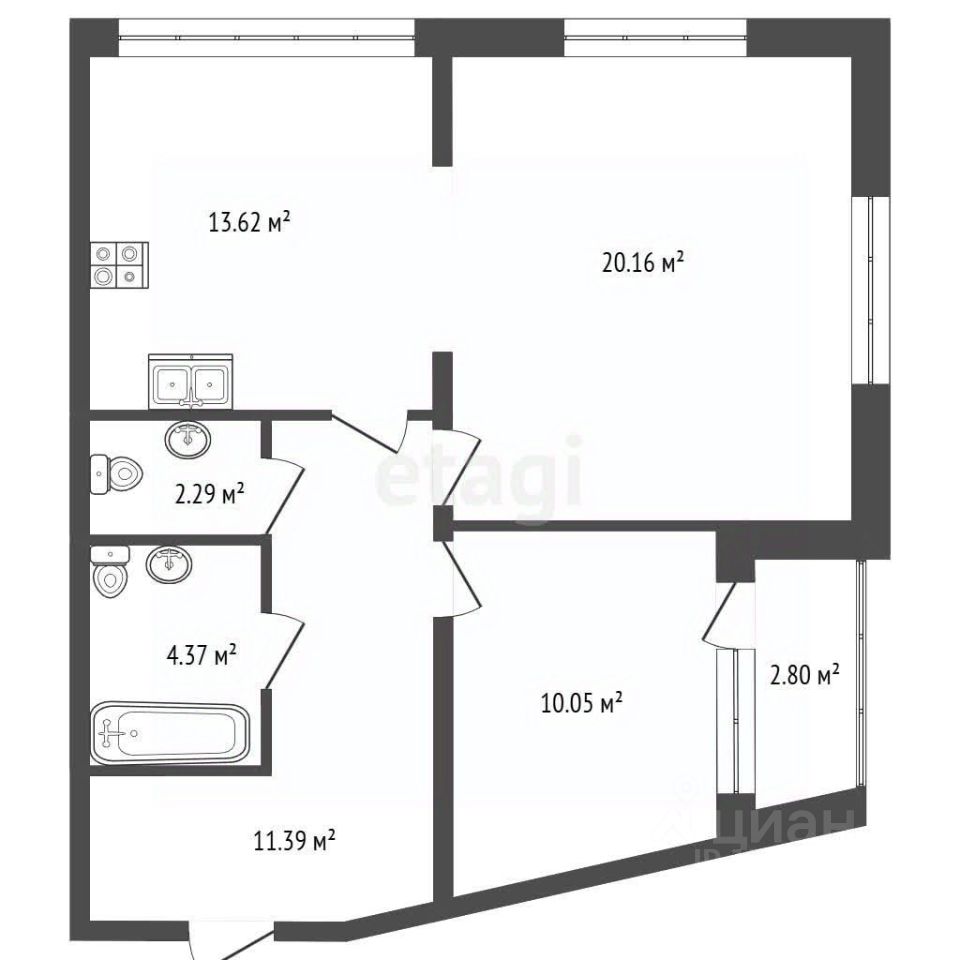 Современная планировка, большая кухня, светлая за счет большого количества панорамных окон, удобное расположение комнат.