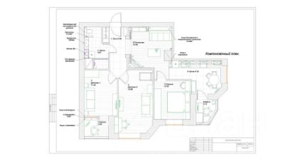 - Комната 2 с кабинетом лоджией 15 кв. м,