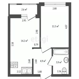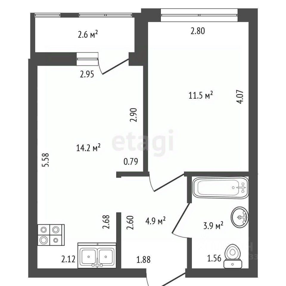 Объект с эргономичной планировкой: изолированная спальня с собственной лоджией, просторная кухня-гостиная с увеличенными окнами, обилие естественного света и открытая панорама без вида на соседние дома.