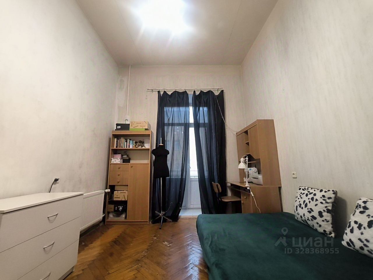 В комнате есть балкон, он выходит на Московский проспект.