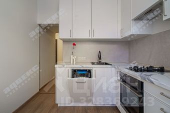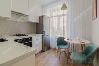 Помещение кухни квадратной формы, что позволяет, с удобством, разместиться на ней семье из четырех человек. Установлен новый эргономичный кухонный гарнитур со всей необходимой встроенной бытовой техникой.