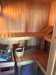 • Ванная комната, 27 м² настоящая спа-зона с финской сауной и отдельным выходом на балкон. Возможно наслаждаться видами на закат прямо из ванны или восстановить силы в расслабляющей сауне.