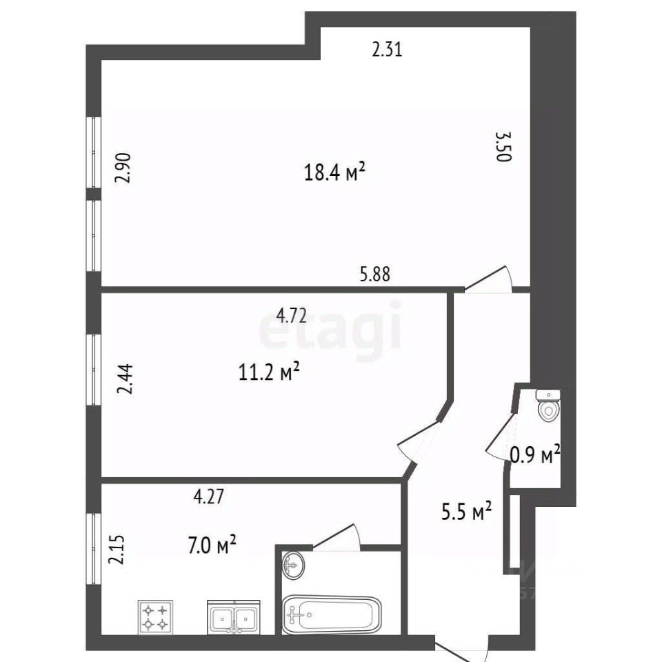 К продаже предлагается светлая двухкомнатная квартира общей площадью 44,7 кв. м в кирпичном доме 1905 постройки.