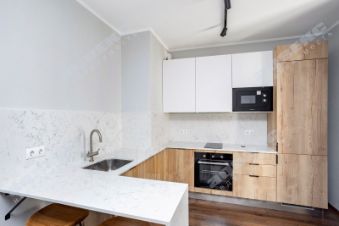 Студия имеет комфортный метраж 26.7м2 + лоджия(не входит в метраж) и правильную форму. Не пенал! Кухня со всей встроенной техникой (холодильник, плита, вытяжка, духовой шкаф, микроволновая печь и посудомоечная машина), столешница и фартук - искусственный камень, стиральная машинка. Вся мебель и техника остается в подарок!