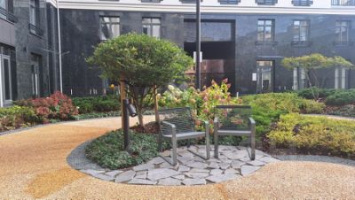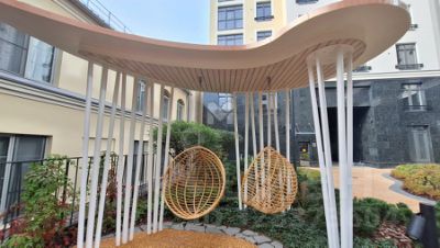 Территория ЖК закрыта от посторонних, во внутреннем камерном дворе благоустроенный сквер, качели, перголы для отдыха и детская площадка.