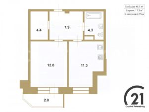 Высокие потолки 2,75 м создают ощущение простора и свободы