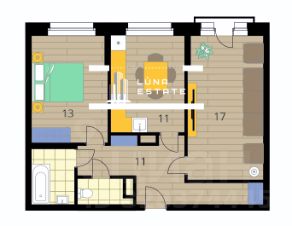 - просторные комнаты 17 м2 + 13 м2