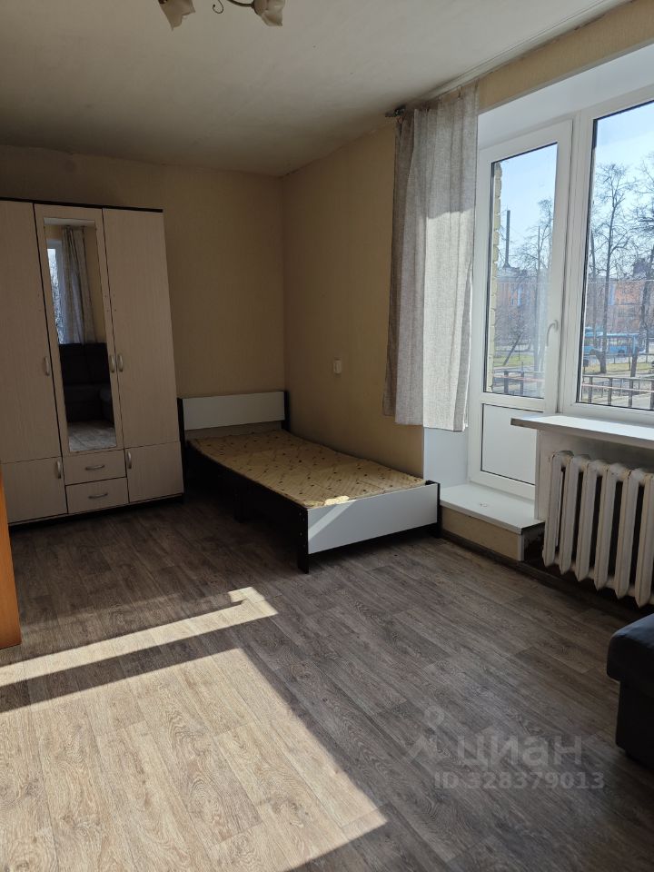 В комнате два больших окна. Пространство легко зонируется: здесь удобно выделить спальную зону, место для отдыха и при необходимости — рабочий уголок.