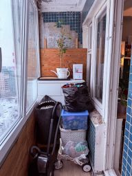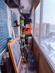 Большой балкон утеплен и застеклен качественными стеклопакетами. За счет этого, в квартире много места для хранения личных вещей.