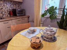 Квартира находится в хорошем состоянии, чистая и ухоженная. За счёт высокого этажа в квартире много естественного света, из окон открывается красивая перспектива на двор и центр города, с потрясающими закатами.