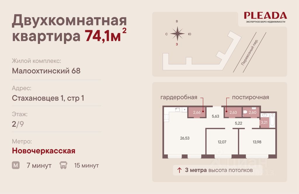 Площадь: удобная планировка с двумя спальнями, кухней-гостиной 26,5 кв.м.