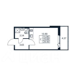 Прямая продажа от застройщика! Готовая Студия 22.7 кв.м с чистовой отделкой на 1 этаже в сданном ЖК "Полис Лаврики".