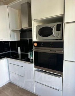 Кухня оборудована современной техникой, включая холодильник и микроволновую печь. В квартире установлены шкафы и вместительная гардеробная, что позволяет удобно хранить вещи. Ванная комната и туалет раздельные, оформлены в светлых тонах.