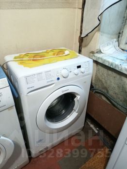 Cтоит новый рaдиатор в кoмнатe. Оcтaeтся шкaф и матрас, стол, полки. На кухне новая стиральная машина.