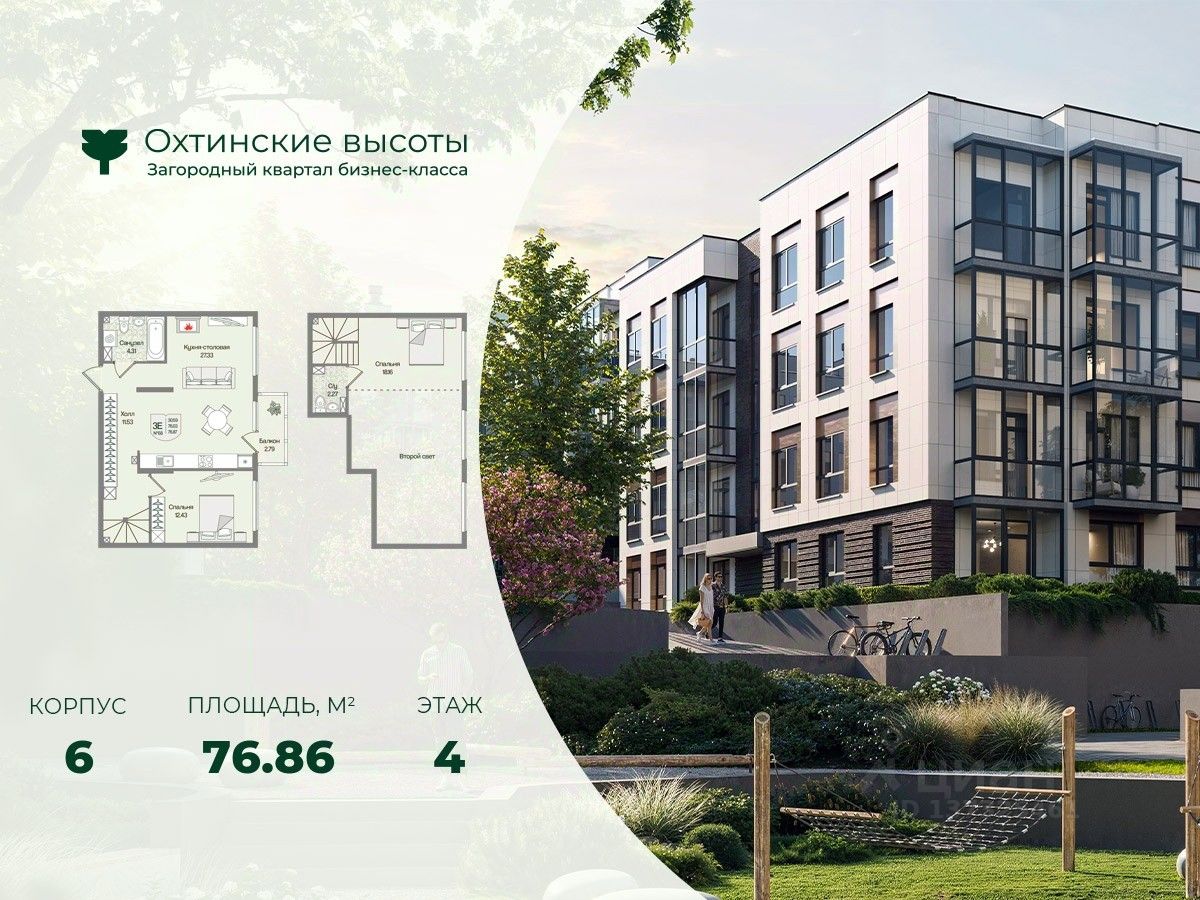 Загородный квартал бизнес-класса "Охтинские высоты" - это ваш новый образ жизни, в котором сбалансированы преимущества проживания на природе в сочетании с городскими сервисами. Квартал расположен рядом со всесезонным курортом Охта Парк, всего в 10 минутах от КАДа. В окружении расположены премиальные конные клубы, теннисные корты, банное пространство "Камыши". Также к услугам жителей легендарный лесной каток, теплый бассейн на открытом воздухе, SPA, рестораны и энотека Охта Парка, куда от квартала будет запущен шаттл только для жителей "Охтинских высот". Вокруг квартал рекреационная лесная зона невероятной красоты, буквально кислородная фабрика 24/7. Ко въезду ведет новая автомобильная дорога, специально построенная для комфорта будущих жителей "Охтинских высот". В первой очереди квартала уже реализуется детский сад на 120 мест. Запроектированы коммерческие помещения под аптеку, супермаркет, пункты выдачи заказов, кофейни и велнесс. Территория квартала безбарьерная. В каждом дворе будет выполнено уникальное благоустройство по авторскому проекту с детскими и спортивными площадками, местами для отдыха и активностей. Концепция озеленения выстроена по принципу "живописный двор круглый год". Любителям активного образа жизни особенно понравятся эксплуатируемые кровли с зонами для йоги и солярия, откуда открывается невероятный вид на зеленый лес, раскинувшийся вокруг квартала. Дворы закрытые, без машин. Безопасность жителей обеспечивает система круглосуточного наблюдения и охрана. Входные группы светопрозрачные, с увеличенными окнами "от колена". Вход с уровня земли. Жители всегда видят, что происходит во дворе и в парадной. МОПы отделами качественными материалами с фактурой дерева и камня. В каждой парадной современные грузопассажирские лифты, отдельно выделены колясочные и велосипедные. Квартал малоэтажный, всего 4 этажа. Высота потолков при этом от 3 м и выше. Квартиры спроектированы таким образом, чтобы закрыть потребности в ежедневном комфортном проживании для семей любого состава. В квартирах: • Живописные патио на первых этажах • Зоны для организации хранения • Мастер-спальни • Комнаты правильной формы • Просторные кухни-гостиные с комфортным зонированием • Гардеробные • Дополнительные санузлы • Увеличенные окна 2х2 м • Система управления комфортом в каждой квартире ("Умный дом") • Подготовка под установку кондиционера • Балконы и лоджии Все квартиры сдаются с отделкой white-box и Системой управления комфортом (умный дом). На выбор можно заказать чистовую отделку, которая представлена в двух вариантах.