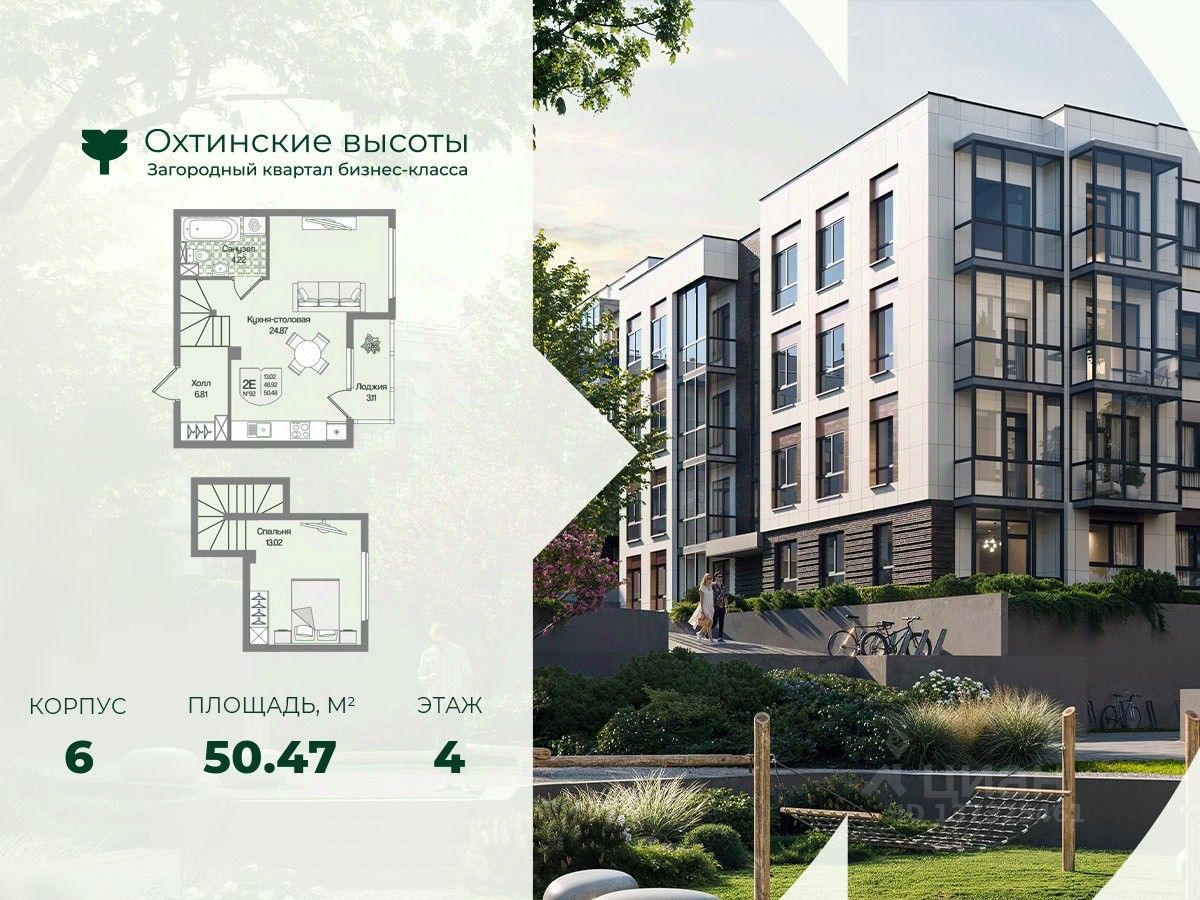Загородный квартал бизнес-класса "Охтинские высоты" - это ваш новый образ жизни, в котором сбалансированы преимущества проживания на природе в сочетании с городскими сервисами. Квартал расположен рядом со всесезонным курортом Охта Парк, всего в 10 минутах от КАДа. В окружении расположены премиальные конные клубы, теннисные корты, банное пространство "Камыши". Также к услугам жителей легендарный лесной каток, теплый бассейн на открытом воздухе, SPA, рестораны и энотека Охта Парка, куда от квартала будет запущен шаттл только для жителей "Охтинских высот". Вокруг квартал рекреационная лесная зона невероятной красоты, буквально кислородная фабрика 24/7. Ко въезду ведет новая автомобильная дорога, специально построенная для комфорта будущих жителей "Охтинских высот". В первой очереди квартала уже реализуется детский сад на 120 мест. Запроектированы коммерческие помещения под аптеку, супермаркет, пункты выдачи заказов, кофейни и велнесс. Территория квартала безбарьерная. В каждом дворе будет выполнено уникальное благоустройство по авторскому проекту с детскими и спортивными площадками, местами для отдыха и активностей. Концепция озеленения выстроена по принципу "живописный двор круглый год". Любителям активного образа жизни особенно понравятся эксплуатируемые кровли с зонами для йоги и солярия, откуда открывается невероятный вид на зеленый лес, раскинувшийся вокруг квартала. Дворы закрытые, без машин. Безопасность жителей обеспечивает система круглосуточного наблюдения и охрана. Входные группы светопрозрачные, с увеличенными окнами "от колена". Вход с уровня земли. Жители всегда видят, что происходит во дворе и в парадной. МОПы отделами качественными материалами с фактурой дерева и камня. В каждой парадной современные грузопассажирские лифты, отдельно выделены колясочные и велосипедные. Квартал малоэтажный, всего 4 этажа. Высота потолков при этом от 3 м и выше. Квартиры спроектированы таким образом, чтобы закрыть потребности в ежедневном комфортном проживании для семей любого состава. В квартирах: • Живописные патио на первых этажах • Зоны для организации хранения • Мастер-спальни • Комнаты правильной формы • Просторные кухни-гостиные с комфортным зонированием • Гардеробные • Дополнительные санузлы • Увеличенные окна 2х2 м • Система управления комфортом в каждой квартире ("Умный дом") • Подготовка под установку кондиционера • Балконы и лоджии Все квартиры сдаются с отделкой white-box и Системой управления комфортом (умный дом). На выбор можно заказать чистовую отделку, которая представлена в двух вариантах.