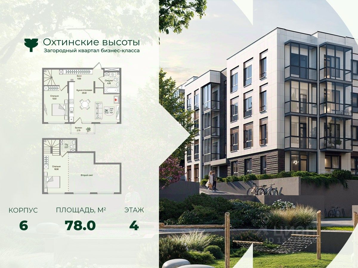 Загородный квартал бизнес-класса "Охтинские высоты" - это ваш новый образ жизни, в котором сбалансированы преимущества проживания на природе в сочетании с городскими сервисами. Квартал расположен рядом со всесезонным курортом Охта Парк, всего в 10 минутах от КАДа. В окружении расположены премиальные конные клубы, теннисные корты, банное пространство "Камыши". Также к услугам жителей легендарный лесной каток, теплый бассейн на открытом воздухе, SPA, рестораны и энотека Охта Парка, куда от квартала будет запущен шаттл только для жителей "Охтинских высот". Вокруг квартал рекреационная лесная зона невероятной красоты, буквально кислородная фабрика 24/7. Ко въезду ведет новая автомобильная дорога, специально построенная для комфорта будущих жителей "Охтинских высот". В первой очереди квартала уже реализуется детский сад на 120 мест. Запроектированы коммерческие помещения под аптеку, супермаркет, пункты выдачи заказов, кофейни и велнесс. Территория квартала безбарьерная. В каждом дворе будет выполнено уникальное благоустройство по авторскому проекту с детскими и спортивными площадками, местами для отдыха и активностей. Концепция озеленения выстроена по принципу "живописный двор круглый год". Любителям активного образа жизни особенно понравятся эксплуатируемые кровли с зонами для йоги и солярия, откуда открывается невероятный вид на зеленый лес, раскинувшийся вокруг квартала. Дворы закрытые, без машин. Безопасность жителей обеспечивает система круглосуточного наблюдения и охрана. Входные группы светопрозрачные, с увеличенными окнами "от колена". Вход с уровня земли. Жители всегда видят, что происходит во дворе и в парадной. МОПы отделами качественными материалами с фактурой дерева и камня. В каждой парадной современные грузопассажирские лифты, отдельно выделены колясочные и велосипедные. Квартал малоэтажный, всего 4 этажа. Высота потолков при этом от 3 м и выше. Квартиры спроектированы таким образом, чтобы закрыть потребности в ежедневном комфортном проживании для семей любого состава. В квартирах: • Живописные патио на первых этажах • Зоны для организации хранения • Мастер-спальни • Комнаты правильной формы • Просторные кухни-гостиные с комфортным зонированием • Гардеробные • Дополнительные санузлы • Увеличенные окна 2х2 м • Система управления комфортом в каждой квартире ("Умный дом") • Подготовка под установку кондиционера • Балконы и лоджии Все квартиры сдаются с отделкой white-box и Системой управления комфортом (умный дом). На выбор можно заказать чистовую отделку, которая представлена в двух вариантах.