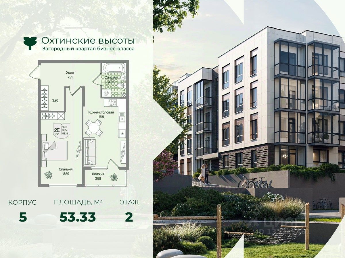 Загородный квартал бизнес-класса "Охтинские высоты" - это ваш новый образ жизни, в котором сбалансированы преимущества проживания на природе в сочетании с городскими сервисами. Квартал расположен рядом со всесезонным курортом Охта Парк, всего в 10 минутах от КАДа. В окружении расположены премиальные конные клубы, теннисные корты, банное пространство "Камыши". Также к услугам жителей легендарный лесной каток, теплый бассейн на открытом воздухе, SPA, рестораны и энотека Охта Парка, куда от квартала будет запущен шаттл только для жителей "Охтинских высот". Вокруг квартал рекреационная лесная зона невероятной красоты, буквально кислородная фабрика 24/7. Ко въезду ведет новая автомобильная дорога, специально построенная для комфорта будущих жителей "Охтинских высот". В первой очереди квартала уже реализуется детский сад на 120 мест. Запроектированы коммерческие помещения под аптеку, супермаркет, пункты выдачи заказов, кофейни и велнесс. Территория квартала безбарьерная. В каждом дворе будет выполнено уникальное благоустройство по авторскому проекту с детскими и спортивными площадками, местами для отдыха и активностей. Концепция озеленения выстроена по принципу "живописный двор круглый год". Любителям активного образа жизни особенно понравятся эксплуатируемые кровли с зонами для йоги и солярия, откуда открывается невероятный вид на зеленый лес, раскинувшийся вокруг квартала. Дворы закрытые, без машин. Безопасность жителей обеспечивает система круглосуточного наблюдения и охрана. Входные группы светопрозрачные, с увеличенными окнами "от колена". Вход с уровня земли. Жители всегда видят, что происходит во дворе и в парадной. МОПы отделами качественными материалами с фактурой дерева и камня. В каждой парадной современные грузопассажирские лифты, отдельно выделены колясочные и велосипедные. Квартал малоэтажный, всего 4 этажа. Высота потолков при этом от 3 м и выше. Квартиры спроектированы таким образом, чтобы закрыть потребности в ежедневном комфортном проживании для семей любого состава. В квартирах: • Живописные патио на первых этажах • Зоны для организации хранения • Мастер-спальни • Комнаты правильной формы • Просторные кухни-гостиные с комфортным зонированием • Гардеробные • Дополнительные санузлы • Увеличенные окна 2х2 м • Система управления комфортом в каждой квартире ("Умный дом") • Подготовка под установку кондиционера • Балконы и лоджии Все квартиры сдаются с отделкой white-box и Системой управления комфортом (умный дом). На выбор можно заказать чистовую отделку, которая представлена в двух вариантах.