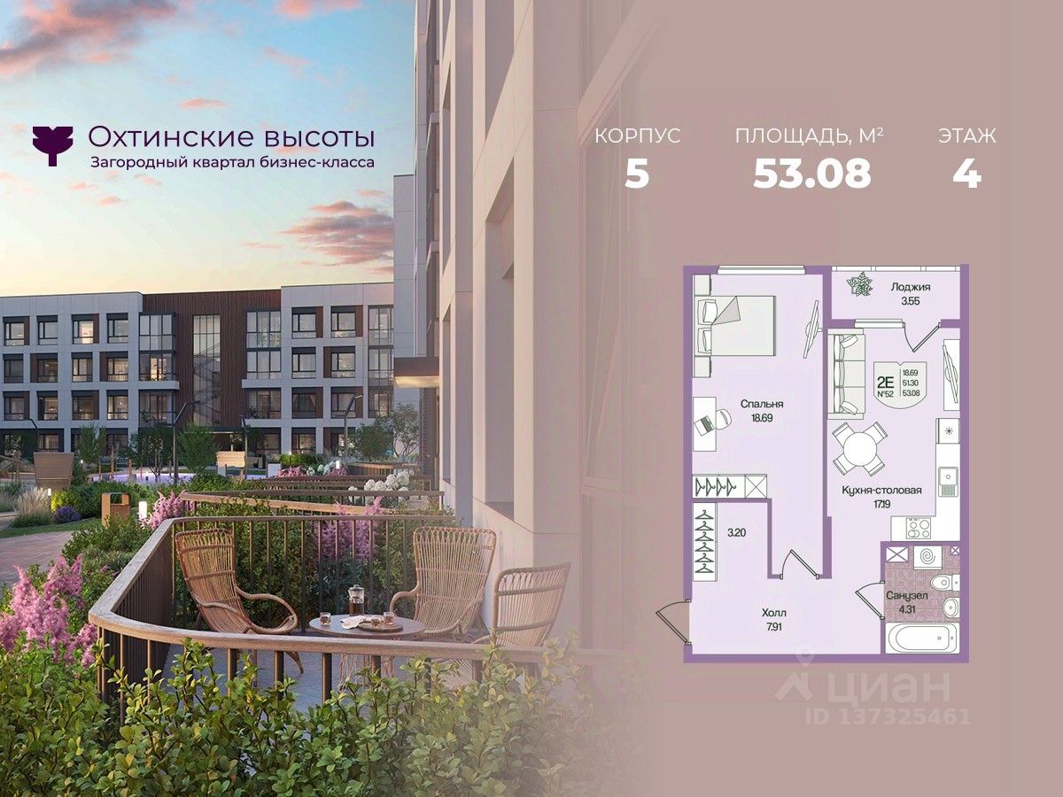 Загородный квартал бизнес-класса "Охтинские высоты" - это ваш новый образ жизни, в котором сбалансированы преимущества проживания на природе в сочетании с городскими сервисами. Квартал расположен рядом со всесезонным курортом Охта Парк, всего в 10 минутах от КАДа. В окружении расположены премиальные конные клубы, теннисные корты, банное пространство "Камыши". Также к услугам жителей легендарный лесной каток, теплый бассейн на открытом воздухе, SPA, рестораны и энотека Охта Парка, куда от квартала будет запущен шаттл только для жителей "Охтинских высот". Вокруг квартал рекреационная лесная зона невероятной красоты, буквально кислородная фабрика 24/7. Ко въезду ведет новая автомобильная дорога, специально построенная для комфорта будущих жителей "Охтинских высот". В первой очереди квартала уже реализуется детский сад на 120 мест. Запроектированы коммерческие помещения под аптеку, супермаркет, пункты выдачи заказов, кофейни и велнесс. Территория квартала безбарьерная. В каждом дворе будет выполнено уникальное благоустройство по авторскому проекту с детскими и спортивными площадками, местами для отдыха и активностей. Концепция озеленения выстроена по принципу "живописный двор круглый год". Любителям активного образа жизни особенно понравятся эксплуатируемые кровли с зонами для йоги и солярия, откуда открывается невероятный вид на зеленый лес, раскинувшийся вокруг квартала. Дворы закрытые, без машин. Безопасность жителей обеспечивает система круглосуточного наблюдения и охрана. Входные группы светопрозрачные, с увеличенными окнами "от колена". Вход с уровня земли. Жители всегда видят, что происходит во дворе и в парадной. МОПы отделами качественными материалами с фактурой дерева и камня. В каждой парадной современные грузопассажирские лифты, отдельно выделены колясочные и велосипедные. Квартал малоэтажный, всего 4 этажа. Высота потолков при этом от 3 м и выше. Квартиры спроектированы таким образом, чтобы закрыть потребности в ежедневном комфортном проживании для семей любого состава. В квартирах: • Живописные патио на первых этажах • Зоны для организации хранения • Мастер-спальни • Комнаты правильной формы • Просторные кухни-гостиные с комфортным зонированием • Гардеробные • Дополнительные санузлы • Увеличенные окна 2х2 м • Система управления комфортом в каждой квартире ("Умный дом") • Подготовка под установку кондиционера • Балконы и лоджии Все квартиры сдаются с отделкой white-box и Системой управления комфортом (умный дом). На выбор можно заказать чистовую отделку, которая представлена в двух вариантах.