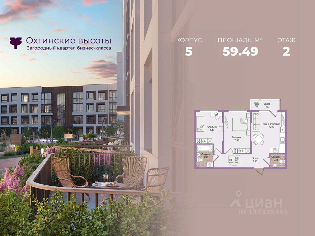 Загородный квартал бизнес-класса "Охтинские высоты" - это ваш новый образ жизни, в котором сбалансированы преимущества проживания на природе в сочетании с городскими сервисами. Квартал расположен рядом со всесезонным курортом Охта Парк, всего в 10 минутах от КАДа. В окружении расположены премиальные конные клубы, теннисные корты, банное пространство "Камыши". Также к услугам жителей легендарный лесной каток, теплый бассейн на открытом воздухе, SPA, рестораны и энотека Охта Парка, куда от квартала будет запущен шаттл только для жителей "Охтинских высот". Вокруг квартал рекреационная лесная зона невероятной красоты, буквально кислородная фабрика 24/7. Ко въезду ведет новая автомобильная дорога, специально построенная для комфорта будущих жителей "Охтинских высот". В первой очереди квартала уже реализуется детский сад на 120 мест. Запроектированы коммерческие помещения под аптеку, супермаркет, пункты выдачи заказов, кофейни и велнесс. Территория квартала безбарьерная. В каждом дворе будет выполнено уникальное благоустройство по авторскому проекту с детскими и спортивными площадками, местами для отдыха и активностей. Концепция озеленения выстроена по принципу "живописный двор круглый год". Любителям активного образа жизни особенно понравятся эксплуатируемые кровли с зонами для йоги и солярия, откуда открывается невероятный вид на зеленый лес, раскинувшийся вокруг квартала. Дворы закрытые, без машин. Безопасность жителей обеспечивает система круглосуточного наблюдения и охрана. Входные группы светопрозрачные, с увеличенными окнами "от колена". Вход с уровня земли. Жители всегда видят, что происходит во дворе и в парадной. МОПы отделами качественными материалами с фактурой дерева и камня. В каждой парадной современные грузопассажирские лифты, отдельно выделены колясочные и велосипедные. Квартал малоэтажный, всего 4 этажа. Высота потолков при этом от 3 м и выше. Квартиры спроектированы таким образом, чтобы закрыть потребности в ежедневном комфортном проживании для семей любого состава. В квартирах: • Живописные патио на первых этажах • Зоны для организации хранения • Мастер-спальни • Комнаты правильной формы • Просторные кухни-гостиные с комфортным зонированием • Гардеробные • Дополнительные санузлы • Увеличенные окна 2х2 м • Система управления комфортом в каждой квартире ("Умный дом") • Подготовка под установку кондиционера • Балконы и лоджии Все квартиры сдаются с отделкой white-box и Системой управления комфортом (умный дом). На выбор можно заказать чистовую отделку, которая представлена в двух вариантах.