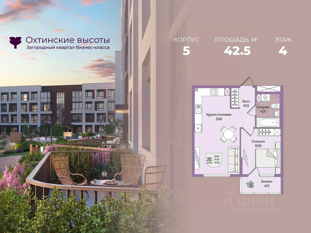 Загородный квартал бизнес-класса "Охтинские высоты" - это ваш новый образ жизни, в котором сбалансированы преимущества проживания на природе в сочетании с городскими сервисами. Квартал расположен рядом со всесезонным курортом Охта Парк, всего в 10 минутах от КАДа. В окружении расположены премиальные конные клубы, теннисные корты, банное пространство "Камыши". Также к услугам жителей легендарный лесной каток, теплый бассейн на открытом воздухе, SPA, рестораны и энотека Охта Парка, куда от квартала будет запущен шаттл только для жителей "Охтинских высот". Вокруг квартал рекреационная лесная зона невероятной красоты, буквально кислородная фабрика 24/7. Ко въезду ведет новая автомобильная дорога, специально построенная для комфорта будущих жителей "Охтинских высот". В первой очереди квартала уже реализуется детский сад на 120 мест. Запроектированы коммерческие помещения под аптеку, супермаркет, пункты выдачи заказов, кофейни и велнесс. Территория квартала безбарьерная. В каждом дворе будет выполнено уникальное благоустройство по авторскому проекту с детскими и спортивными площадками, местами для отдыха и активностей. Концепция озеленения выстроена по принципу "живописный двор круглый год". Любителям активного образа жизни особенно понравятся эксплуатируемые кровли с зонами для йоги и солярия, откуда открывается невероятный вид на зеленый лес, раскинувшийся вокруг квартала. Дворы закрытые, без машин. Безопасность жителей обеспечивает система круглосуточного наблюдения и охрана. Входные группы светопрозрачные, с увеличенными окнами "от колена". Вход с уровня земли. Жители всегда видят, что происходит во дворе и в парадной. МОПы отделами качественными материалами с фактурой дерева и камня. В каждой парадной современные грузопассажирские лифты, отдельно выделены колясочные и велосипедные. Квартал малоэтажный, всего 4 этажа. Высота потолков при этом от 3 м и выше. Квартиры спроектированы таким образом, чтобы закрыть потребности в ежедневном комфортном проживании для семей любого состава. В квартирах: • Живописные патио на первых этажах • Зоны для организации хранения • Мастер-спальни • Комнаты правильной формы • Просторные кухни-гостиные с комфортным зонированием • Гардеробные • Дополнительные санузлы • Увеличенные окна 2х2 м • Система управления комфортом в каждой квартире ("Умный дом") • Подготовка под установку кондиционера • Балконы и лоджии Все квартиры сдаются с отделкой white-box и Системой управления комфортом (умный дом). На выбор можно заказать чистовую отделку, которая представлена в двух вариантах.