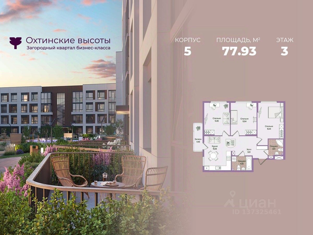 Загородный квартал бизнес-класса "Охтинские высоты" - это ваш новый образ жизни, в котором сбалансированы преимущества проживания на природе в сочетании с городскими сервисами. Квартал расположен рядом со всесезонным курортом Охта Парк, всего в 10 минутах от КАДа. В окружении расположены премиальные конные клубы, теннисные корты, банное пространство "Камыши". Также к услугам жителей легендарный лесной каток, теплый бассейн на открытом воздухе, SPA, рестораны и энотека Охта Парка, куда от квартала будет запущен шаттл только для жителей "Охтинских высот". Вокруг квартал рекреационная лесная зона невероятной красоты, буквально кислородная фабрика 24/7. Ко въезду ведет новая автомобильная дорога, специально построенная для комфорта будущих жителей "Охтинских высот". В первой очереди квартала уже реализуется детский сад на 120 мест. Запроектированы коммерческие помещения под аптеку, супермаркет, пункты выдачи заказов, кофейни и велнесс. Территория квартала безбарьерная. В каждом дворе будет выполнено уникальное благоустройство по авторскому проекту с детскими и спортивными площадками, местами для отдыха и активностей. Концепция озеленения выстроена по принципу "живописный двор круглый год". Любителям активного образа жизни особенно понравятся эксплуатируемые кровли с зонами для йоги и солярия, откуда открывается невероятный вид на зеленый лес, раскинувшийся вокруг квартала. Дворы закрытые, без машин. Безопасность жителей обеспечивает система круглосуточного наблюдения и охрана. Входные группы светопрозрачные, с увеличенными окнами "от колена". Вход с уровня земли. Жители всегда видят, что происходит во дворе и в парадной. МОПы отделами качественными материалами с фактурой дерева и камня. В каждой парадной современные грузопассажирские лифты, отдельно выделены колясочные и велосипедные. Квартал малоэтажный, всего 4 этажа. Высота потолков при этом от 3 м и выше. Квартиры спроектированы таким образом, чтобы закрыть потребности в ежедневном комфортном проживании для семей любого состава. В квартирах: • Живописные патио на первых этажах • Зоны для организации хранения • Мастер-спальни • Комнаты правильной формы • Просторные кухни-гостиные с комфортным зонированием • Гардеробные • Дополнительные санузлы • Увеличенные окна 2х2 м • Система управления комфортом в каждой квартире ("Умный дом") • Подготовка под установку кондиционера • Балконы и лоджии Все квартиры сдаются с отделкой white-box и Системой управления комфортом (умный дом). На выбор можно заказать чистовую отделку, которая представлена в двух вариантах.