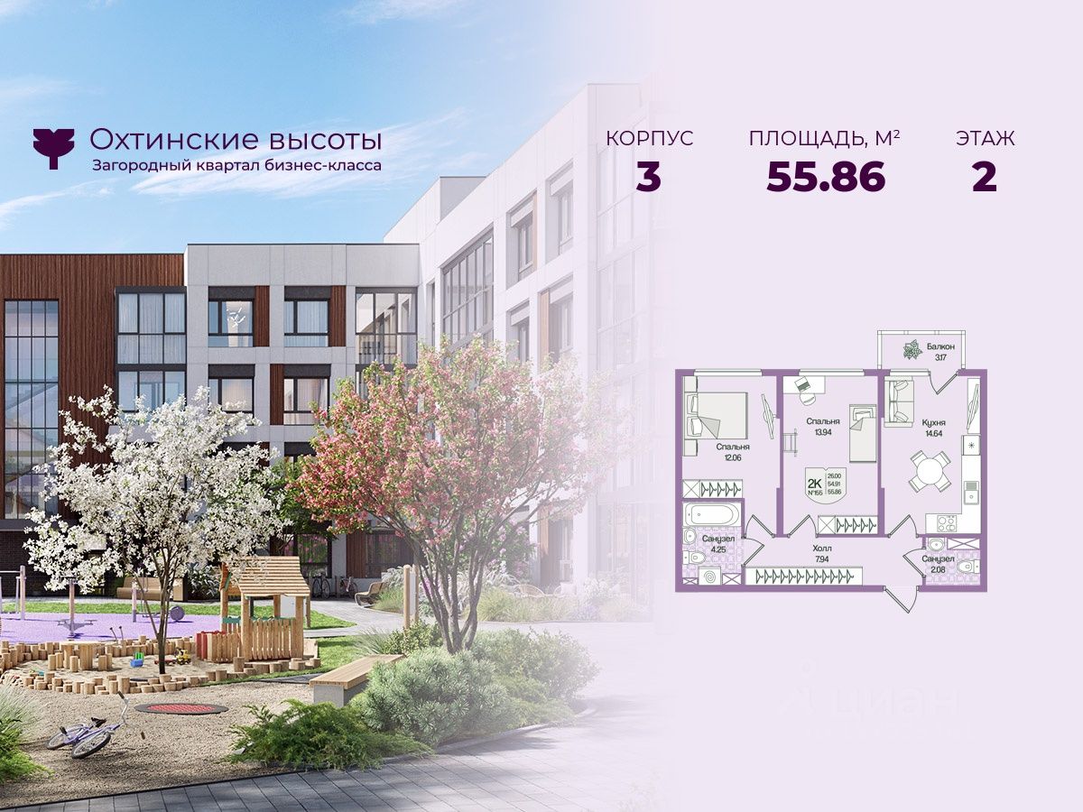 Загородный квартал бизнес-класса "Охтинские высоты" - это ваш новый образ жизни, в котором сбалансированы преимущества проживания на природе в сочетании с городскими сервисами. Квартал расположен рядом со всесезонным курортом Охта Парк, всего в 10 минутах от КАДа. В окружении расположены премиальные конные клубы, теннисные корты, банное пространство "Камыши". Также к услугам жителей легендарный лесной каток, теплый бассейн на открытом воздухе, SPA, рестораны и энотека Охта Парка, куда от квартала будет запущен шаттл только для жителей "Охтинских высот". Вокруг квартал рекреационная лесная зона невероятной красоты, буквально кислородная фабрика 24/7. Ко въезду ведет новая автомобильная дорога, специально построенная для комфорта будущих жителей "Охтинских высот". В первой очереди квартала уже реализуется детский сад на 120 мест. Запроектированы коммерческие помещения под аптеку, супермаркет, пункты выдачи заказов, кофейни и велнесс. Территория квартала безбарьерная. В каждом дворе будет выполнено уникальное благоустройство по авторскому проекту с детскими и спортивными площадками, местами для отдыха и активностей. Концепция озеленения выстроена по принципу "живописный двор круглый год". Любителям активного образа жизни особенно понравятся эксплуатируемые кровли с зонами для йоги и солярия, откуда открывается невероятный вид на зеленый лес, раскинувшийся вокруг квартала. Дворы закрытые, без машин. Безопасность жителей обеспечивает система круглосуточного наблюдения и охрана. Входные группы светопрозрачные, с увеличенными окнами "от колена". Вход с уровня земли. Жители всегда видят, что происходит во дворе и в парадной. МОПы отделами качественными материалами с фактурой дерева и камня. В каждой парадной современные грузопассажирские лифты, отдельно выделены колясочные и велосипедные. Квартал малоэтажный, всего 4 этажа. Высота потолков при этом от 3 м и выше. Квартиры спроектированы таким образом, чтобы закрыть потребности в ежедневном комфортном проживании для семей любого состава. В квартирах: • Живописные патио на первых этажах • Зоны для организации хранения • Мастер-спальни • Комнаты правильной формы • Просторные кухни-гостиные с комфортным зонированием • Гардеробные • Дополнительные санузлы • Увеличенные окна 2х2 м • Система управления комфортом в каждой квартире ("Умный дом") • Подготовка под установку кондиционера • Балконы и лоджии Все квартиры сдаются с отделкой white-box и Системой управления комфортом (умный дом). На выбор можно заказать чистовую отделку, которая представлена в двух вариантах.