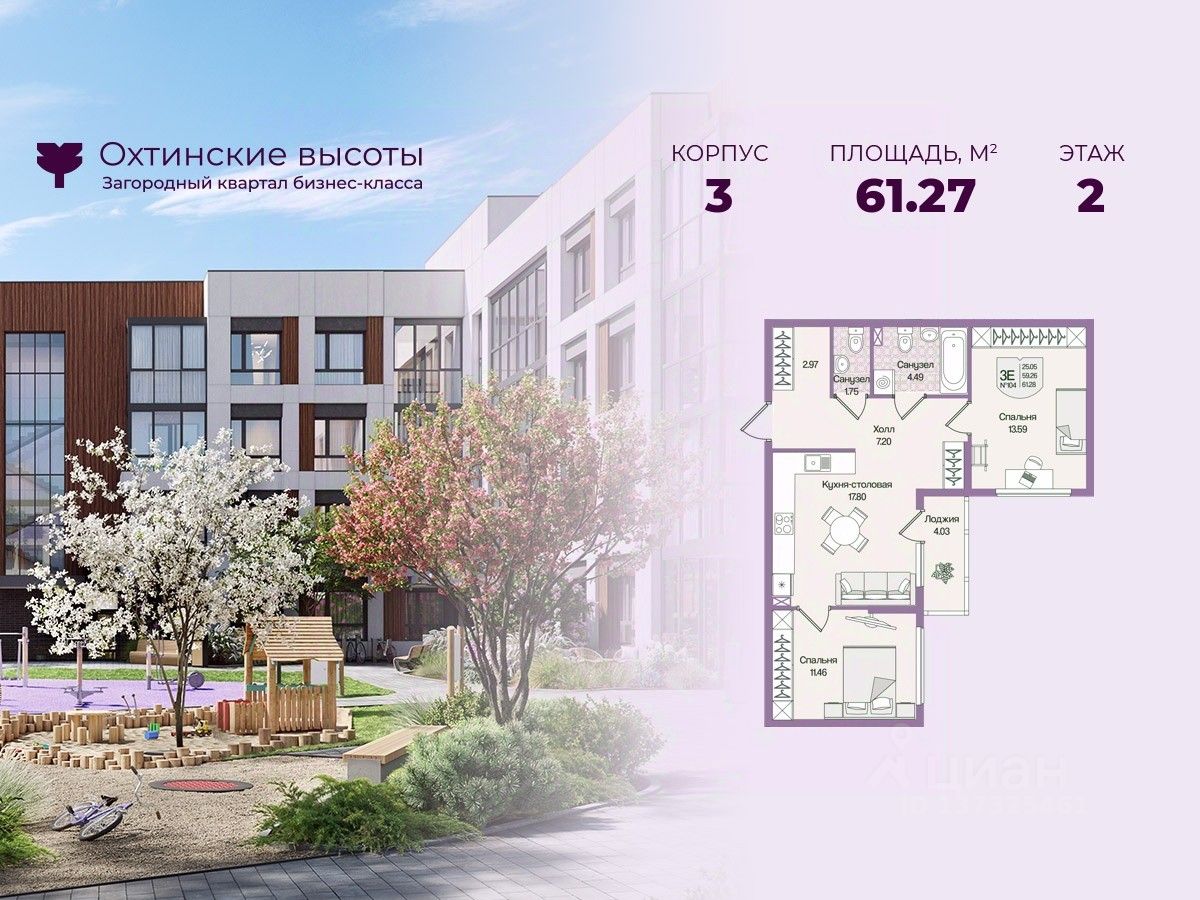 Загородный квартал бизнес-класса "Охтинские высоты" - это ваш новый образ жизни, в котором сбалансированы преимущества проживания на природе в сочетании с городскими сервисами. Квартал расположен рядом со всесезонным курортом Охта Парк, всего в 10 минутах от КАДа. В окружении расположены премиальные конные клубы, теннисные корты, банное пространство "Камыши". Также к услугам жителей легендарный лесной каток, теплый бассейн на открытом воздухе, SPA, рестораны и энотека Охта Парка, куда от квартала будет запущен шаттл только для жителей "Охтинских высот". Вокруг квартал рекреационная лесная зона невероятной красоты, буквально кислородная фабрика 24/7. Ко въезду ведет новая автомобильная дорога, специально построенная для комфорта будущих жителей "Охтинских высот". В первой очереди квартала уже реализуется детский сад на 120 мест. Запроектированы коммерческие помещения под аптеку, супермаркет, пункты выдачи заказов, кофейни и велнесс. Территория квартала безбарьерная. В каждом дворе будет выполнено уникальное благоустройство по авторскому проекту с детскими и спортивными площадками, местами для отдыха и активностей. Концепция озеленения выстроена по принципу "живописный двор круглый год". Любителям активного образа жизни особенно понравятся эксплуатируемые кровли с зонами для йоги и солярия, откуда открывается невероятный вид на зеленый лес, раскинувшийся вокруг квартала. Дворы закрытые, без машин. Безопасность жителей обеспечивает система круглосуточного наблюдения и охрана. Входные группы светопрозрачные, с увеличенными окнами "от колена". Вход с уровня земли. Жители всегда видят, что происходит во дворе и в парадной. МОПы отделами качественными материалами с фактурой дерева и камня. В каждой парадной современные грузопассажирские лифты, отдельно выделены колясочные и велосипедные. Квартал малоэтажный, всего 4 этажа. Высота потолков при этом от 3 м и выше. Квартиры спроектированы таким образом, чтобы закрыть потребности в ежедневном комфортном проживании для семей любого состава. В квартирах: • Живописные патио на первых этажах • Зоны для организации хранения • Мастер-спальни • Комнаты правильной формы • Просторные кухни-гостиные с комфортным зонированием • Гардеробные • Дополнительные санузлы • Увеличенные окна 2х2 м • Система управления комфортом в каждой квартире ("Умный дом") • Подготовка под установку кондиционера • Балконы и лоджии Все квартиры сдаются с отделкой white-box и Системой управления комфортом (умный дом). На выбор можно заказать чистовую отделку, которая представлена в двух вариантах.