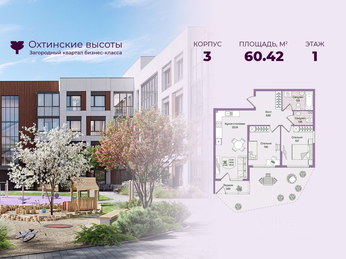 Загородный квартал бизнес-класса "Охтинские высоты" - это ваш новый образ жизни, в котором сбалансированы преимущества проживания на природе в сочетании с городскими сервисами. Квартал расположен рядом со всесезонным курортом Охта Парк, всего в 10 минутах от КАДа. В окружении расположены премиальные конные клубы, теннисные корты, банное пространство "Камыши". Также к услугам жителей легендарный лесной каток, теплый бассейн на открытом воздухе, SPA, рестораны и энотека Охта Парка, куда от квартала будет запущен шаттл только для жителей "Охтинских высот". Вокруг квартал рекреационная лесная зона невероятной красоты, буквально кислородная фабрика 24/7. Ко въезду ведет новая автомобильная дорога, специально построенная для комфорта будущих жителей "Охтинских высот". В первой очереди квартала уже реализуется детский сад на 120 мест. Запроектированы коммерческие помещения под аптеку, супермаркет, пункты выдачи заказов, кофейни и велнесс. Территория квартала безбарьерная. В каждом дворе будет выполнено уникальное благоустройство по авторскому проекту с детскими и спортивными площадками, местами для отдыха и активностей. Концепция озеленения выстроена по принципу "живописный двор круглый год". Любителям активного образа жизни особенно понравятся эксплуатируемые кровли с зонами для йоги и солярия, откуда открывается невероятный вид на зеленый лес, раскинувшийся вокруг квартала. Дворы закрытые, без машин. Безопасность жителей обеспечивает система круглосуточного наблюдения и охрана. Входные группы светопрозрачные, с увеличенными окнами "от колена". Вход с уровня земли. Жители всегда видят, что происходит во дворе и в парадной. МОПы отделами качественными материалами с фактурой дерева и камня. В каждой парадной современные грузопассажирские лифты, отдельно выделены колясочные и велосипедные. Квартал малоэтажный, всего 4 этажа. Высота потолков при этом от 3 м и выше. Квартиры спроектированы таким образом, чтобы закрыть потребности в ежедневном комфортном проживании для семей любого состава. В квартирах: • Живописные патио на первых этажах • Зоны для организации хранения • Мастер-спальни • Комнаты правильной формы • Просторные кухни-гостиные с комфортным зонированием • Гардеробные • Дополнительные санузлы • Увеличенные окна 2х2 м • Система управления комфортом в каждой квартире ("Умный дом") • Подготовка под установку кондиционера • Балконы и лоджии Все квартиры сдаются с отделкой white-box и Системой управления комфортом (умный дом). На выбор можно заказать чистовую отделку, которая представлена в двух вариантах.