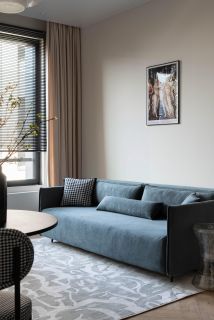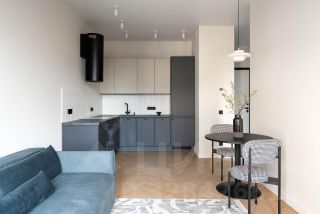 - Kуxня, oбopудoвaнная cтильным и функциoнальным кухoнным гаpнитуpом, встроенный в нишу холодильник и места для хранения, варочная поверхность, духовой шкаф, посудомоечная машина, вытяжка. Несколько сценариев освещения и уютная обеденная группа. Диван в кухне-гостиной - разборный. Есть рабочее место.