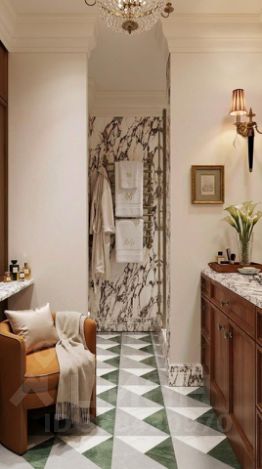 - Мастерспальня с собственной гардеробной и просторной ванной комнатой создаёт ощущение личных апартаментов внутри квартиры.