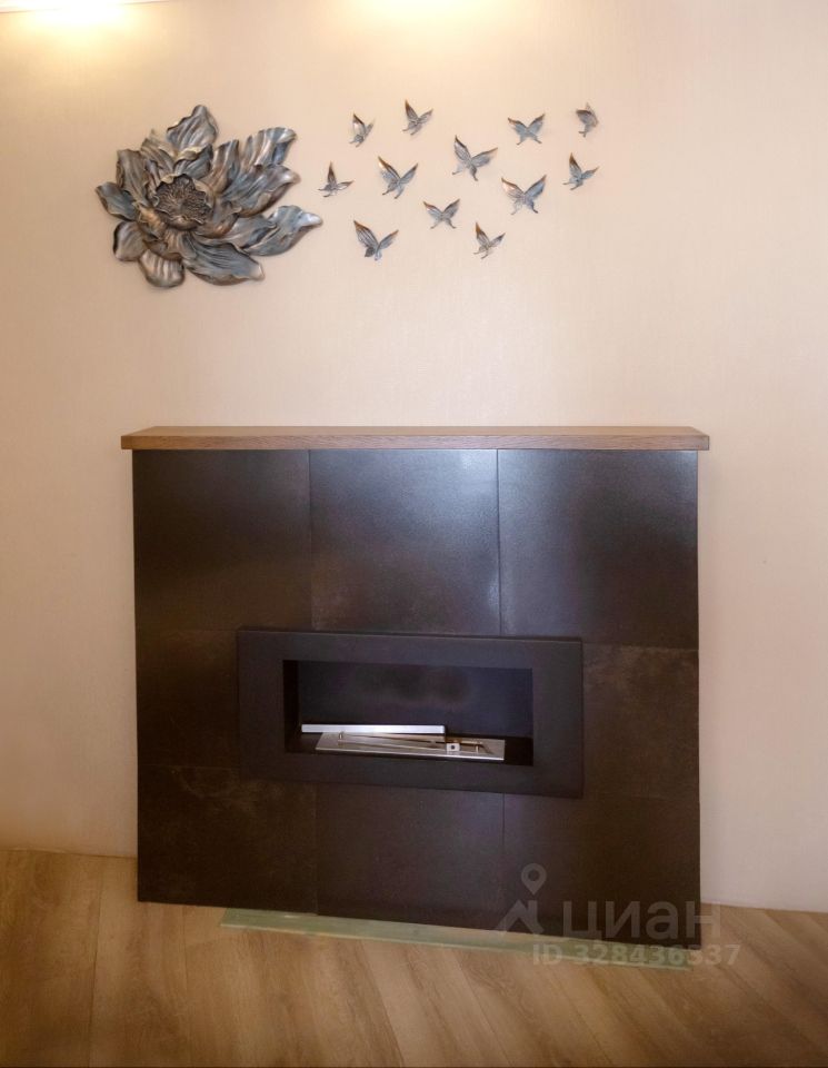 - В кухне-гостиной установлен камин, для теплых семейных вечеров