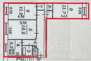 Общая площадь 56,9кв. М.