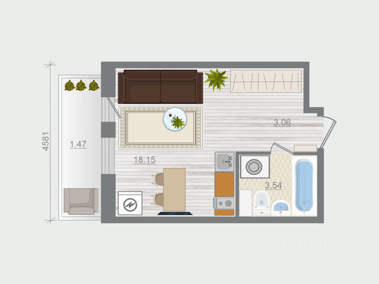 Общая площадь26,22 м²