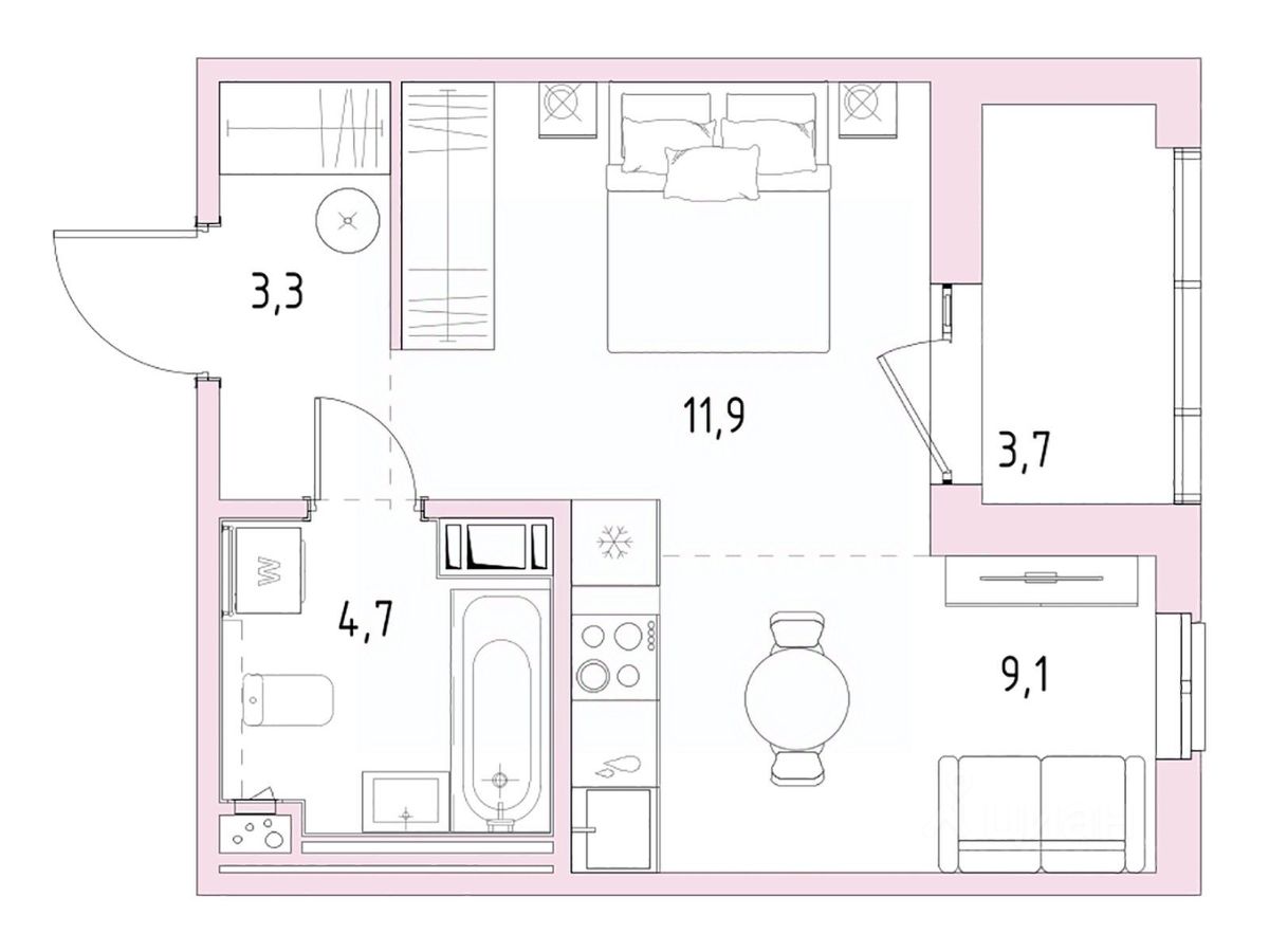 Продается однокомнатная квартира 57 в ЖК Янила Форест