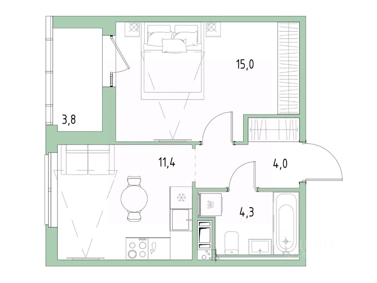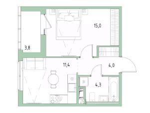 Продается однокомнатная квартира 107 в ЖК Янила Форест