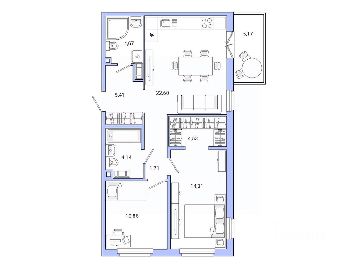 2 лоджии, 1 балкон