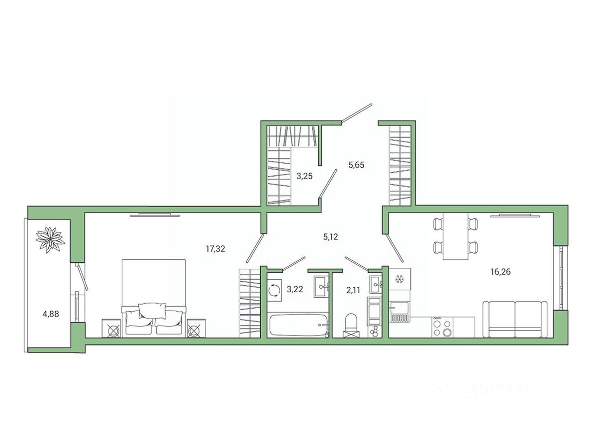 17,3 м²
